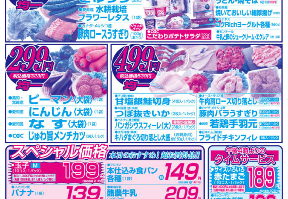 お客様が安心・安全に気を遣う精肉部門では、生産者のはっきりとした地元産の「みかわビーフ」・「田原ポーク」を中心に鮮度にもこだわった商品化に力を入れています。また、オーストラリア産牛肉やカナダ産豚肉など世界中からおいしい商品を厳選して品揃えしています。店舗においては、お肉屋さんの均一セールやゾロ目セールも好評をいただいております。おいしくてお値打ちなお肉ならニューライフフジと言われるように日々努力しています。